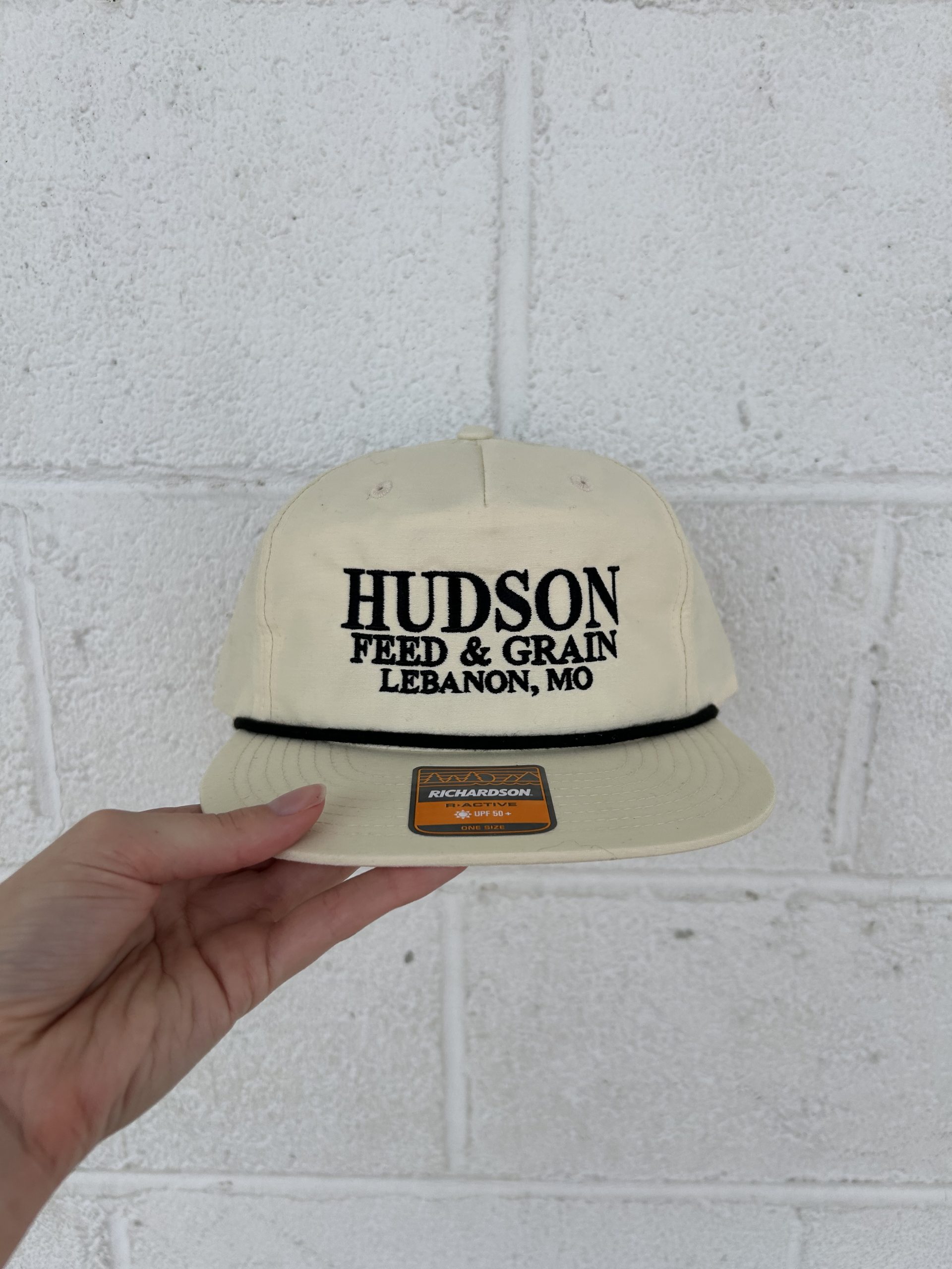 This is our most popular style of hat and we are so excited to have more colors up on our website! This hat is cream, with black embroidery. It is one size, but has an adjustable snap back.